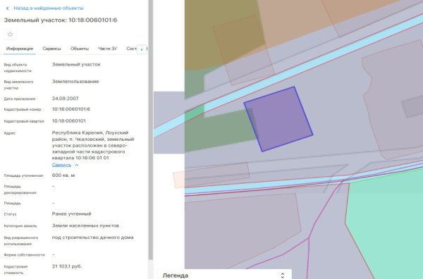 Лот №1.Продажа земельного участка из земель населенных пунктов, имеющего кадастровый номер 10:18:0060101:6, площадью 600 кв.м, местоположение: Республика Карелия, Лоухский район, п. Чкаловский, земельный участок расположен в северо-западной части кадастрового квартала 10:18:06 01 01, вид разрешенного использования – «под строительство дачного дома».